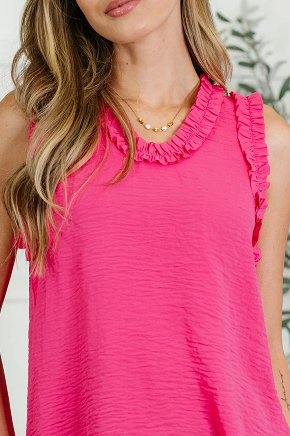 Versatile Pleated Lace Rose Red Tank Tops 2668070